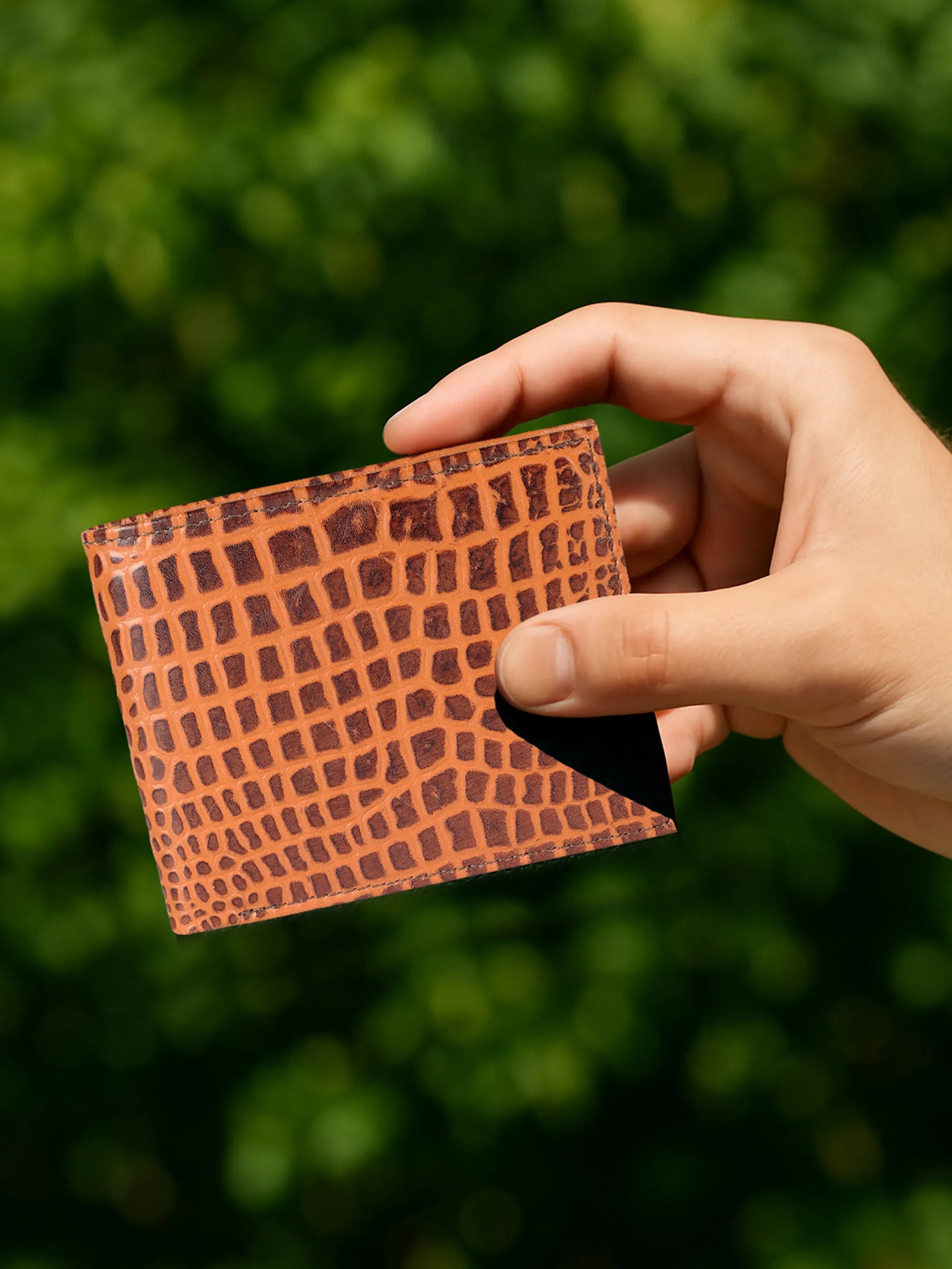 IN.HIDE Dual-Tone Croco Texture Leather Wallet – Light & Dark Brown