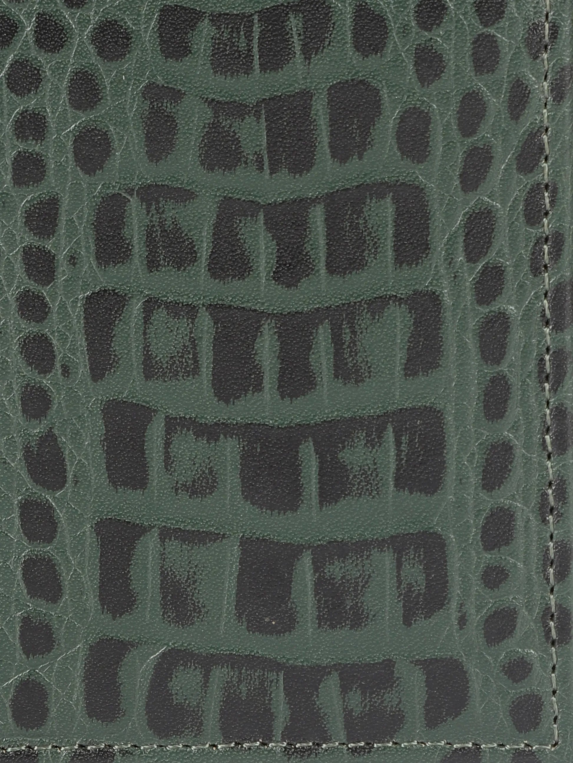 IN.HIDE Classic Croco Olive Real Leather Bi-Fold Wallet with 11 Card Holders for Men